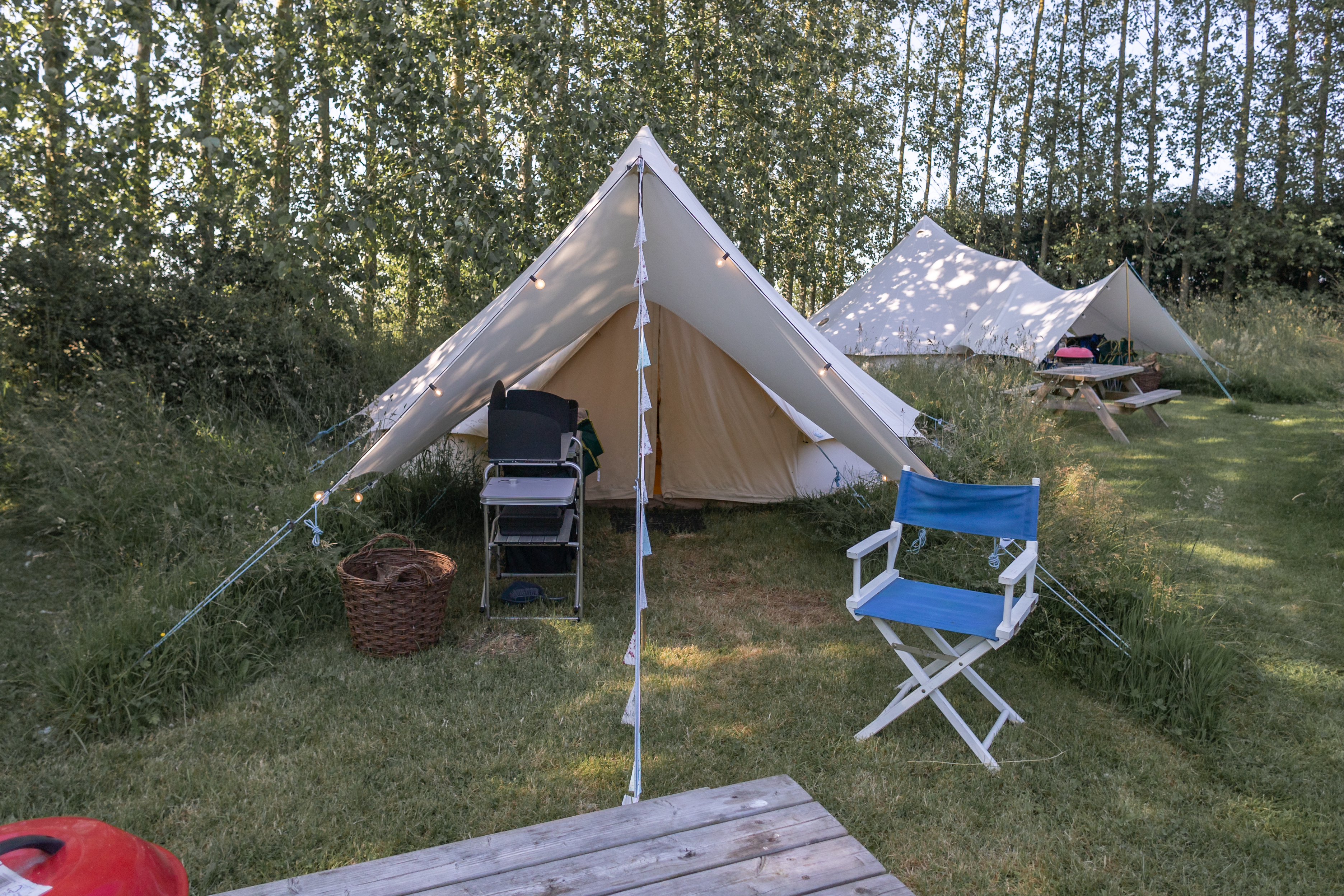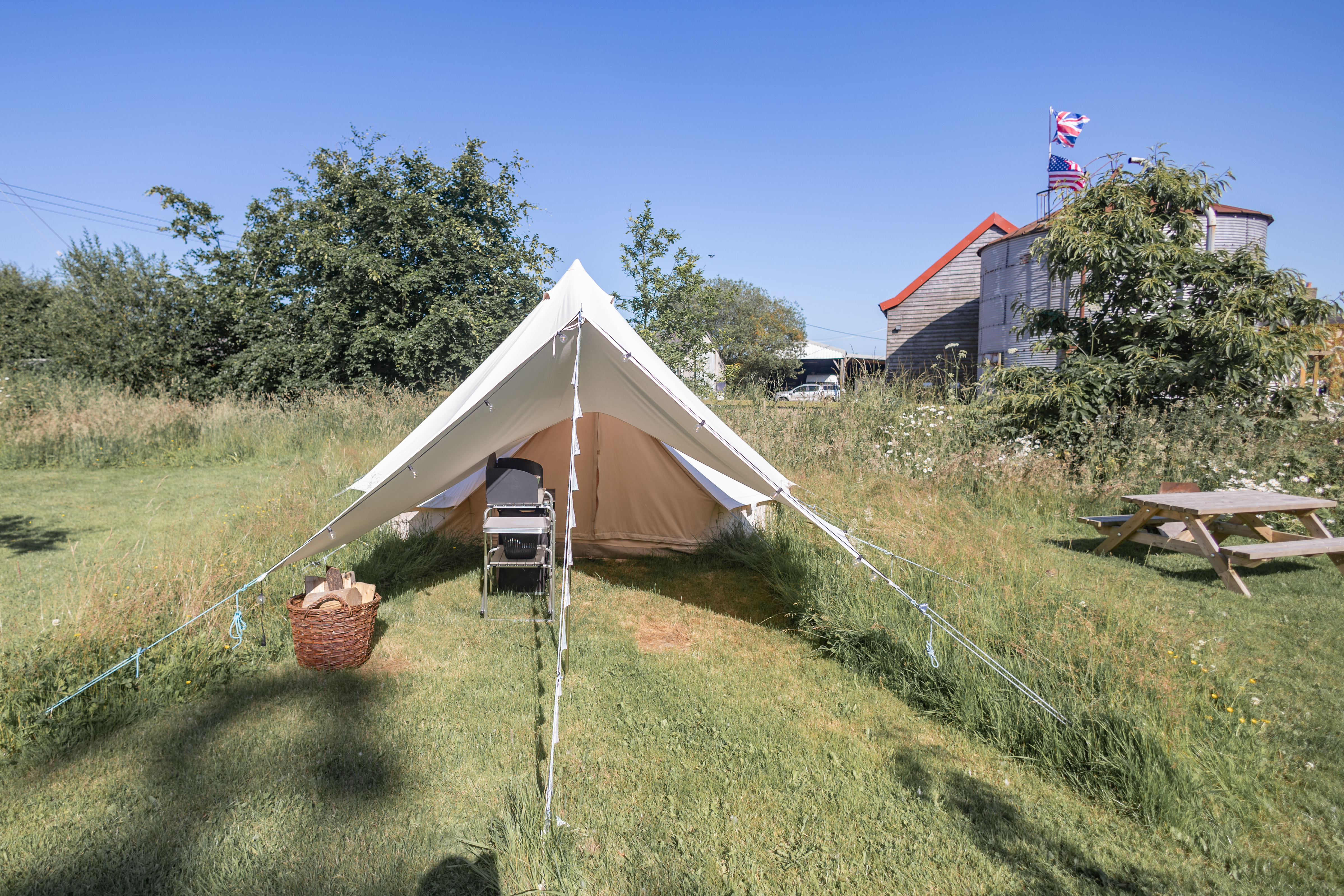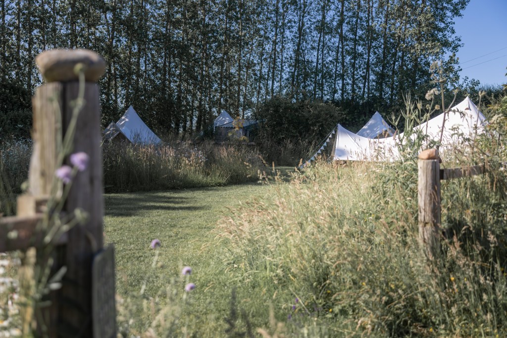 Dogs are not permitted in the bell tents. Guests can enjoy the natural surroundings with the added convenience of power sockets and provided towels.
