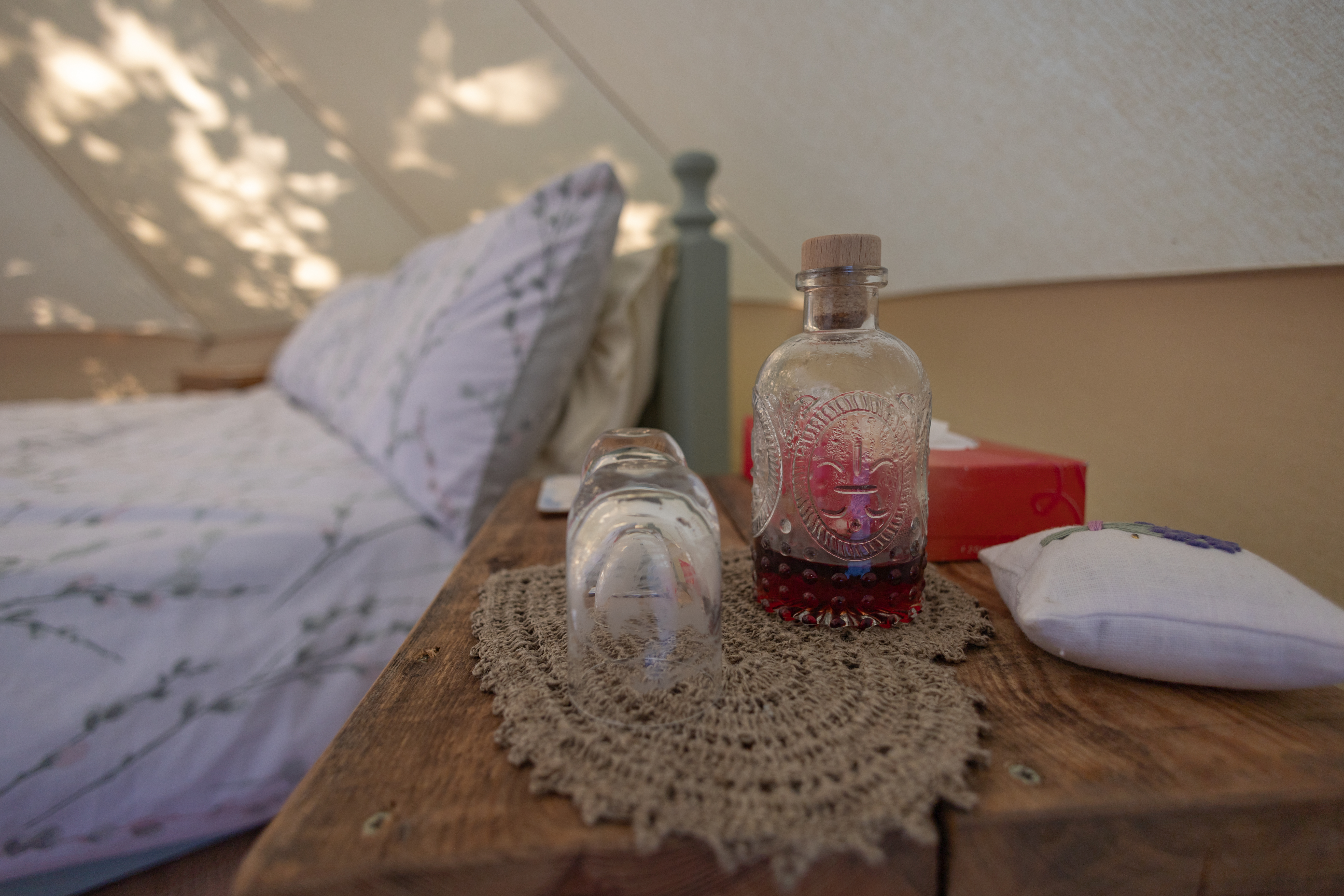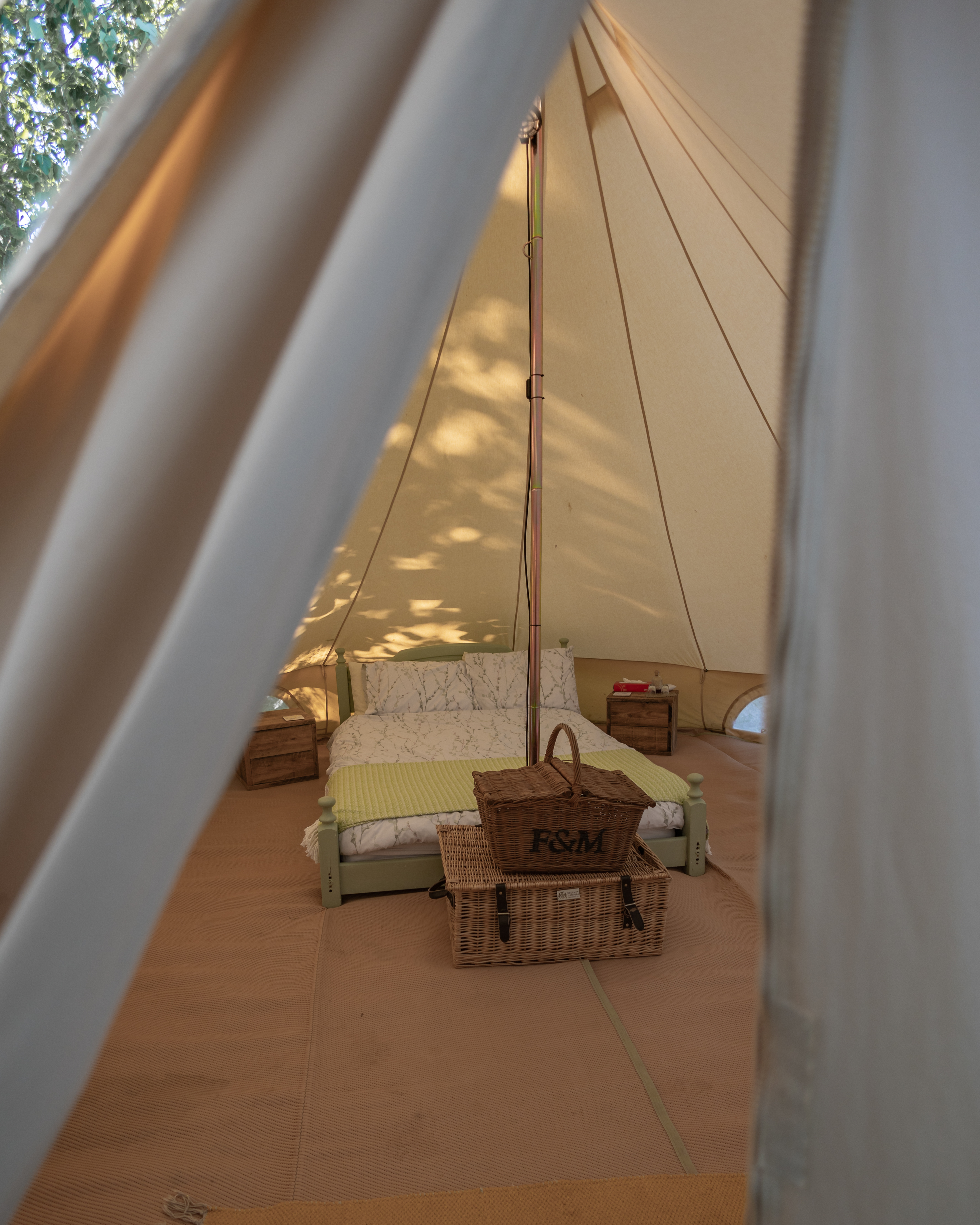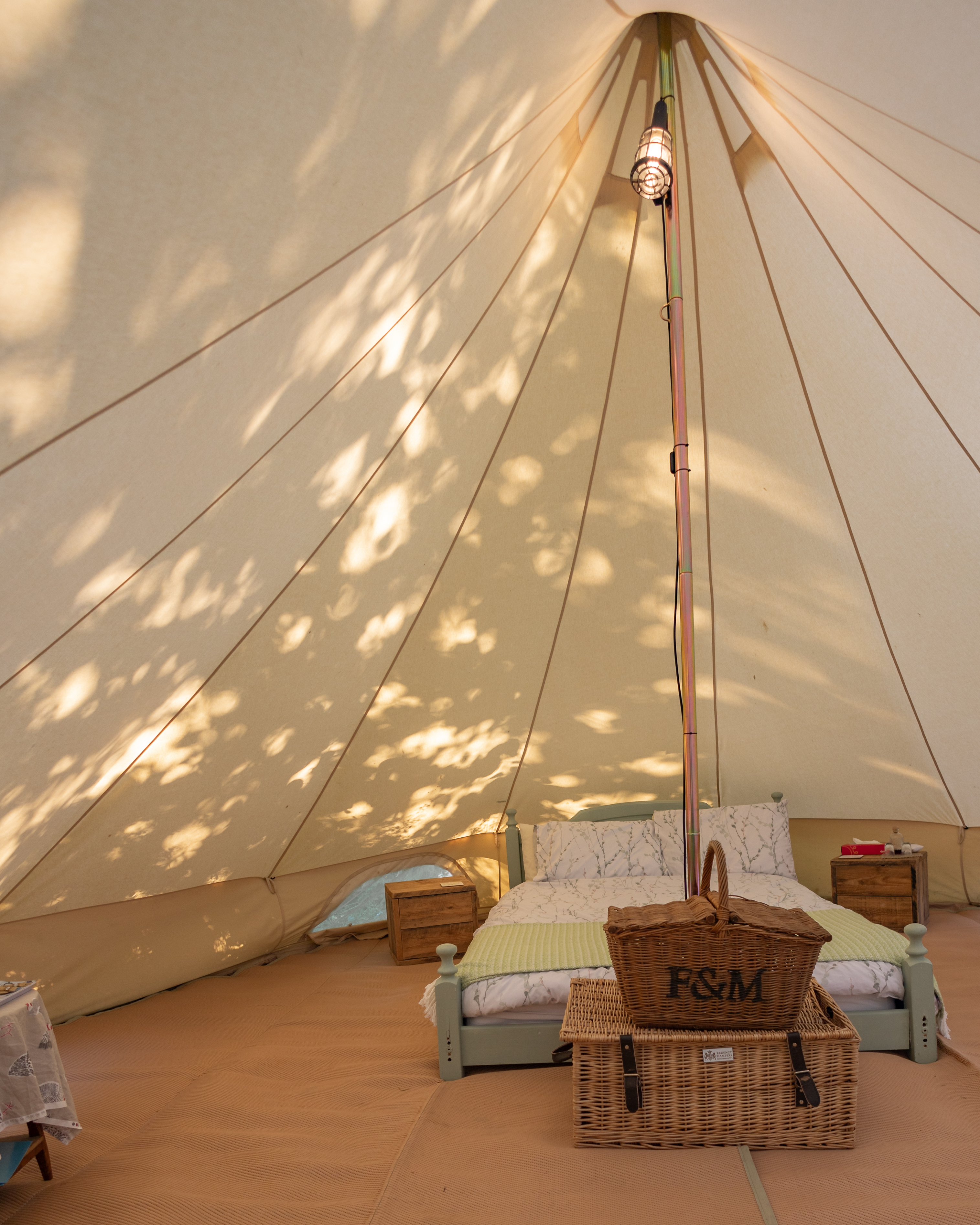 Enjoy a bell tent offering plenty of open space, perfect for up to four guests. Inside, you’ll find a double bed with bedding and linen provided, plus two single airbeds for additional sleeping arrangements.
