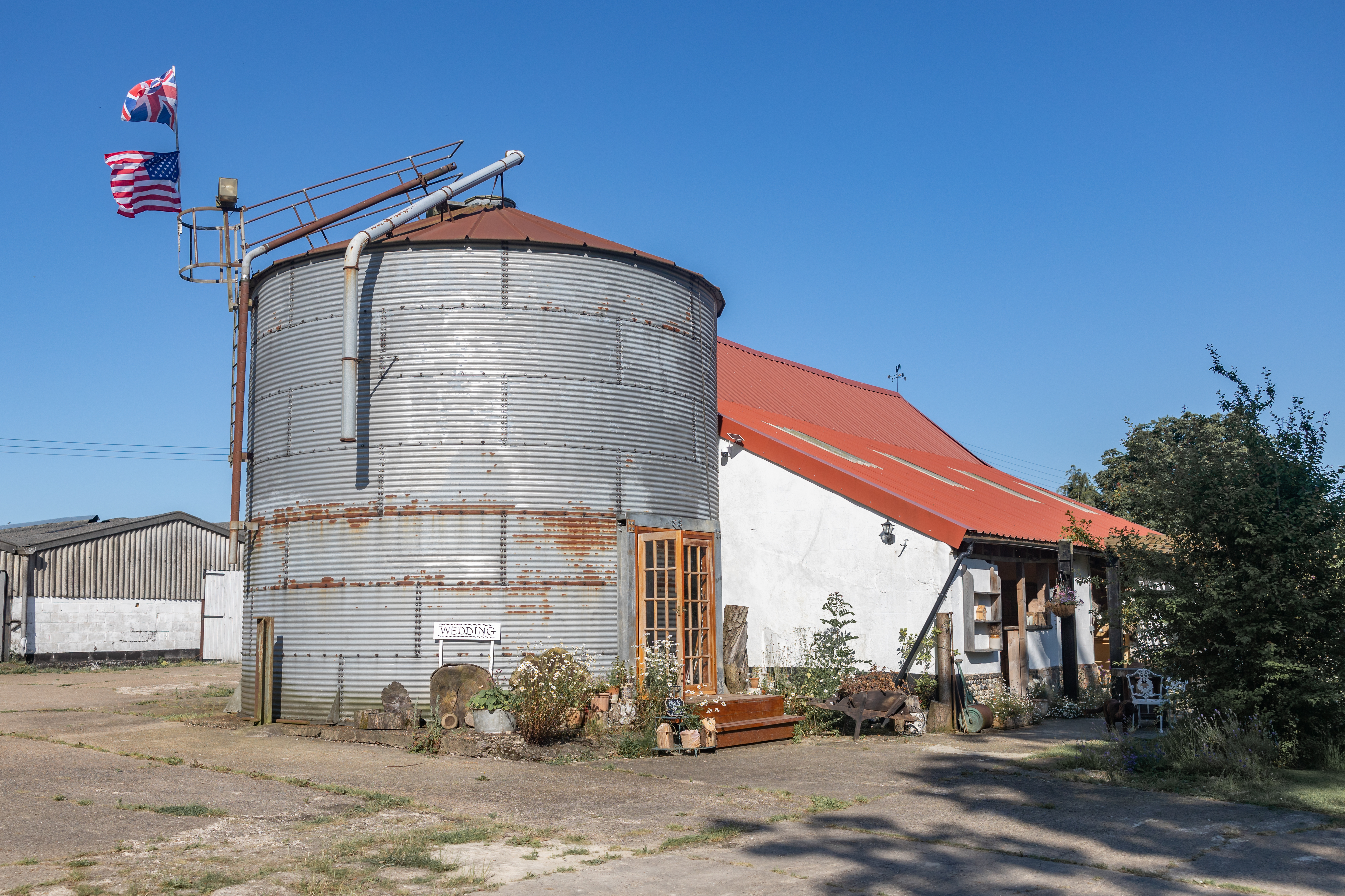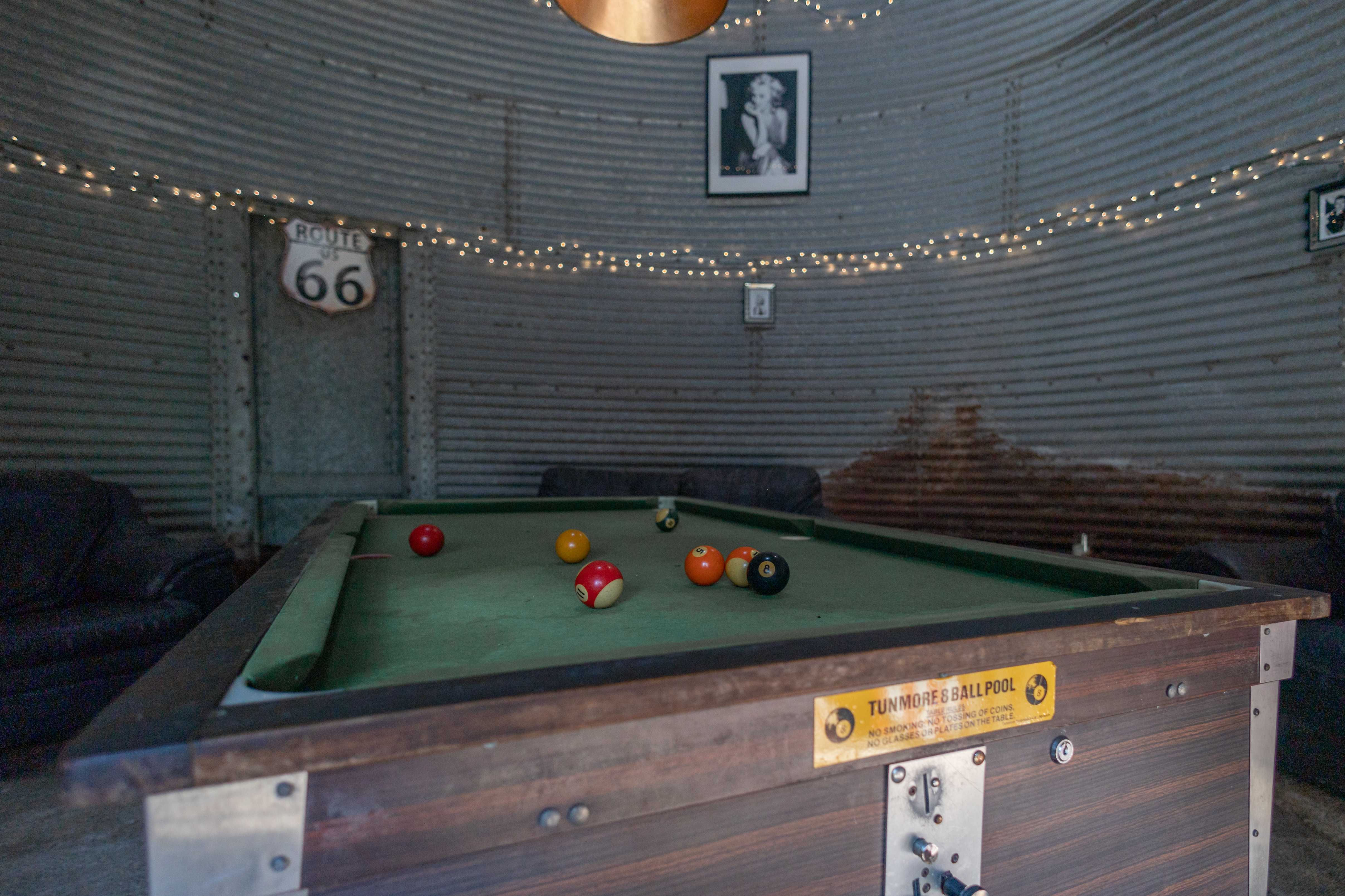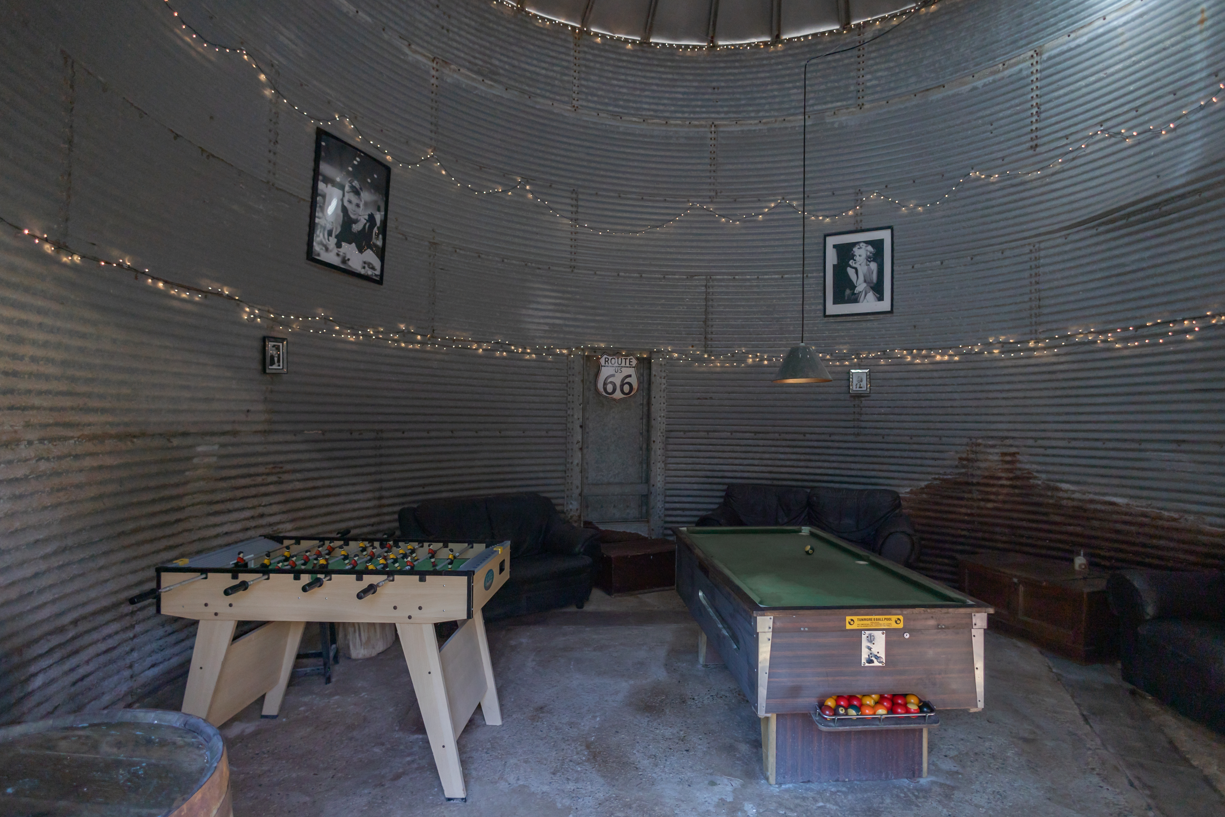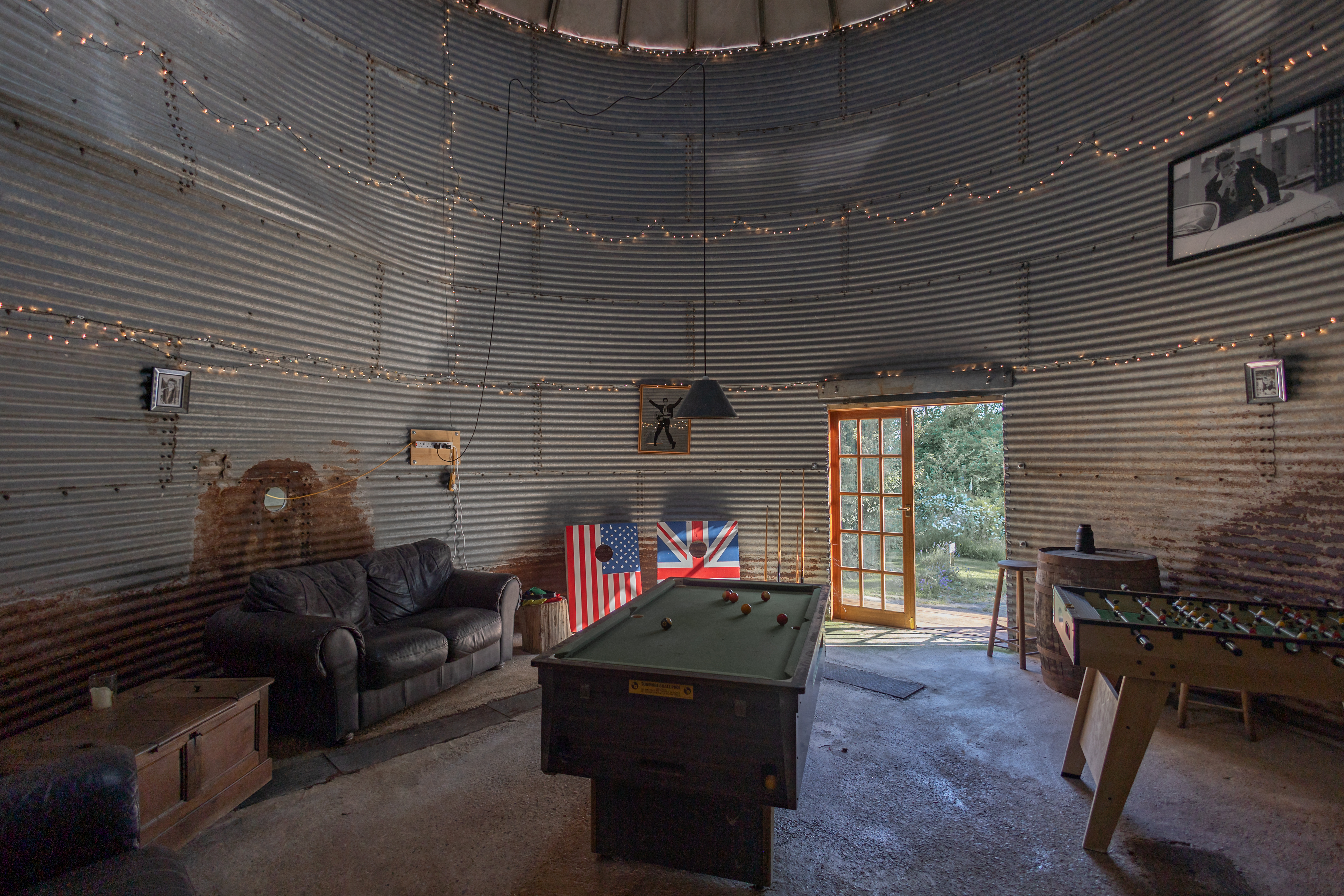 Inside the barn, you’ll find a dining table and chairs, offering a welcoming space to eat, chat, or relax. Whether you’re gathering for a meal or enjoying a moment of downtime, this area provides a cozy retreat from the outdoors.